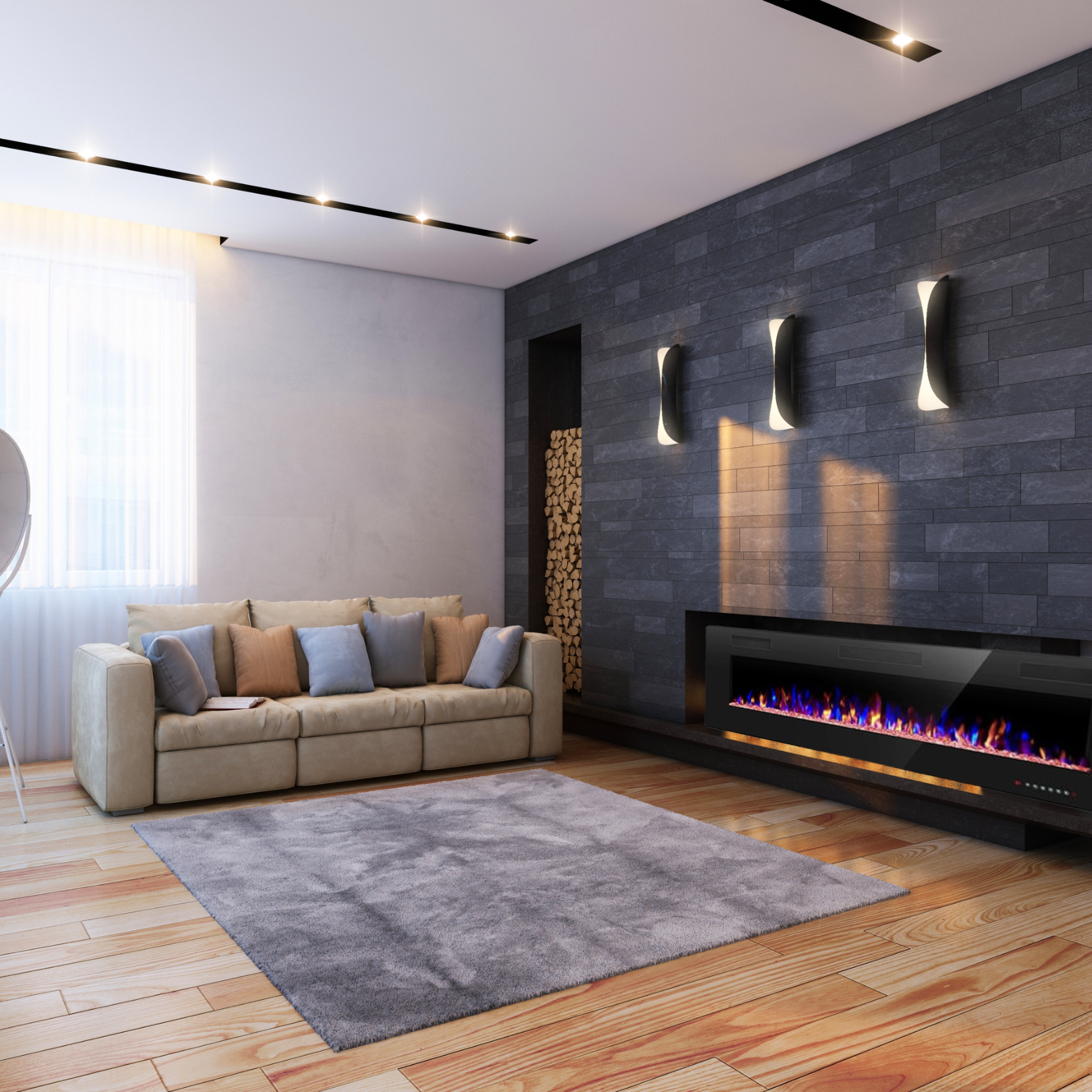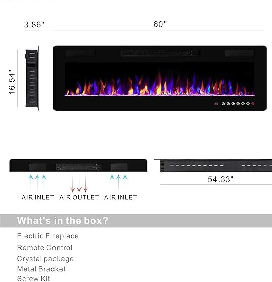 - Attractive and Practical Design: 3.86″D x 60″W x 18.11″H,The thickness of the new style is only 3.86 inches while the old one is 6 inches. And it operates the same as the old one. Also we redesign the location of main power and power cable, which makes the new fireplace more attractive and practical.