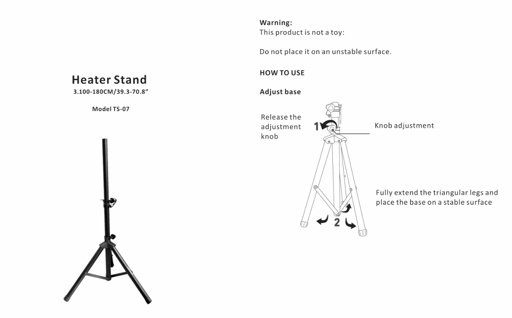 The tripod features an adjustable height and a sturdy base, allowing optimal heat direction and coverage. Easy to assemble and move, it offers flexibility and convenience while keeping the heater securely positioned for efficient heating performance.